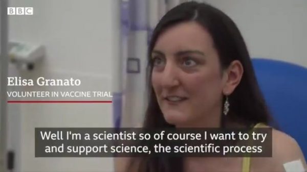 நான் ஒரு விஞ்ஞானி எங்கெல்லாம் விஞ்ஞான முயற்சிகளிற்கு நான் ஆதரவை வழங்கவிரும்புகின்றேன் என இன்று மருந்து வழங்கப்பட்ட இருவரில் ஒருவரான எலிசா கிரனட்டோ தெரிவித்துள்ளார்.