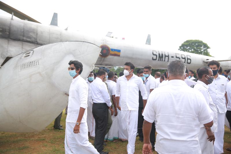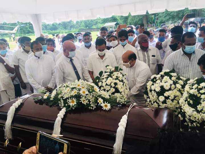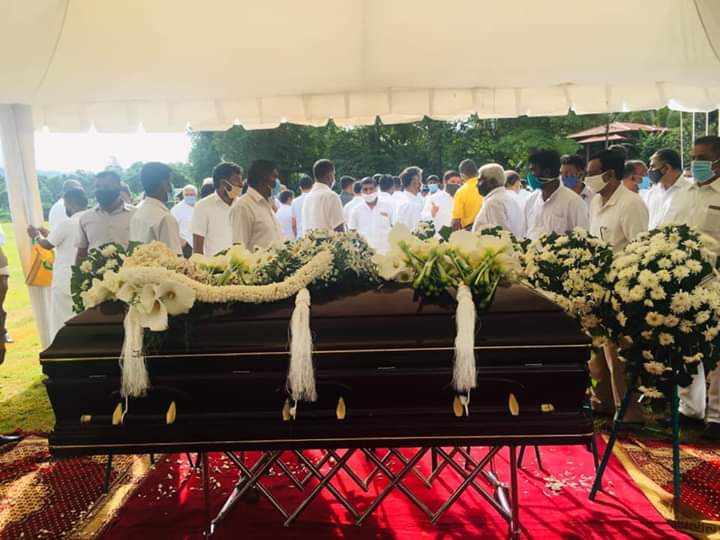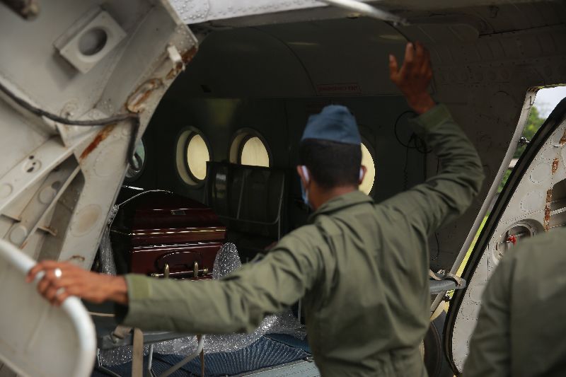 இலங்கை விமானப்படைக்குச் சொந்தமான விசேட ஹெலிக்கொப்டரில் இன்று காலை கொழும்பிலிருந்து அவரது சொந்த ஊருக்கு எடுத்துச் செல்லப்பட்டது.