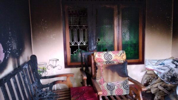 மோட்டார் சைக்கிளுக்கு தீ வைத்ததன் காரணமாக வீடு முழுவதும் தீ பரவி வீட்டிருந்த தளபாடங்களும் எரிந்து நாசமாகியுள்ளது.