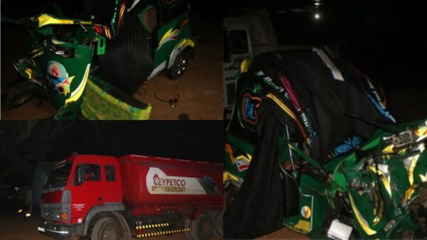 முச்சக்கரவண்டியும், பெற்றோலியக் கூட்டுத்தாபனத்திற்கு சொந்தமான வாகனமும் நேருக்கு நேர் மோதியதில் குறித்த விபத்து இடம்பெற்றுள்ளது.