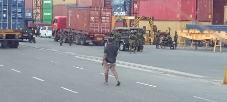 விசேட பாதுகாப்பு அணியினர் பாதுகாப்பு வழங்க, அந்த அணியின் மோட்டார் படையணி இருபுறங்களிலும் பயணிக்க, கடுமையான பாதுகாப்புடன் கொள்கலன் ஒன்று துறைமுகத்துக்கு கொண்டு செல்லப்பட்டுள்ளது.