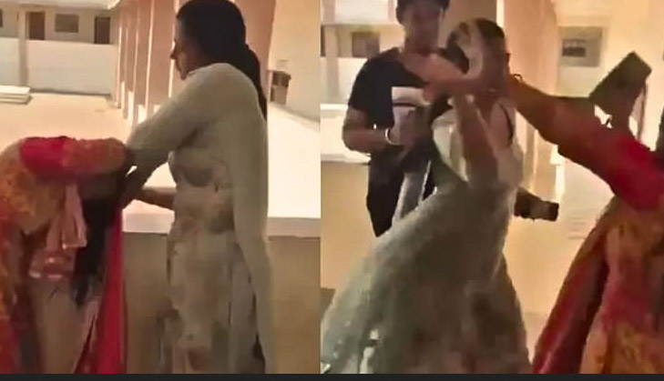 In the video, it can be seen, both the officials slapped each other, pulled hair, and pushed each other. The principal also broke the… pic.twitter.com/nk2z63oWIL