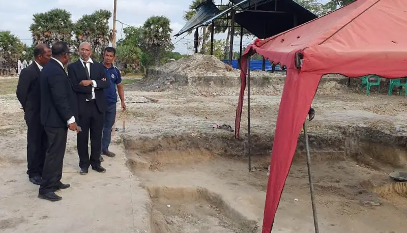 அகழ்விடத்தில் குற்றப்புலனாய்வுத் திணைக்கள அதிகாரிகள்