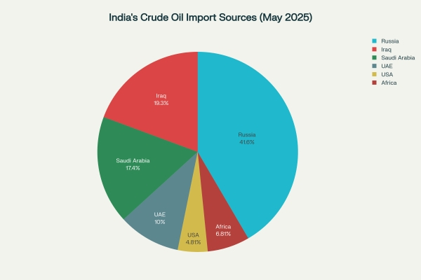 2022-இல் ரஷ்யா-உக்ரைன் மோதல் தொடங்கிய பின்னர், இந்தியா தனது பாரம்பரிய மேற்கு ஆசிய எண்ணெய் வழங்கல் நாடுகளிடம் இருந்து மாறி, ரஷ்யாவை தனது மிகப்பெரிய எண்ணெய் வழங்குநராக மாற்றியுள்ளது.
