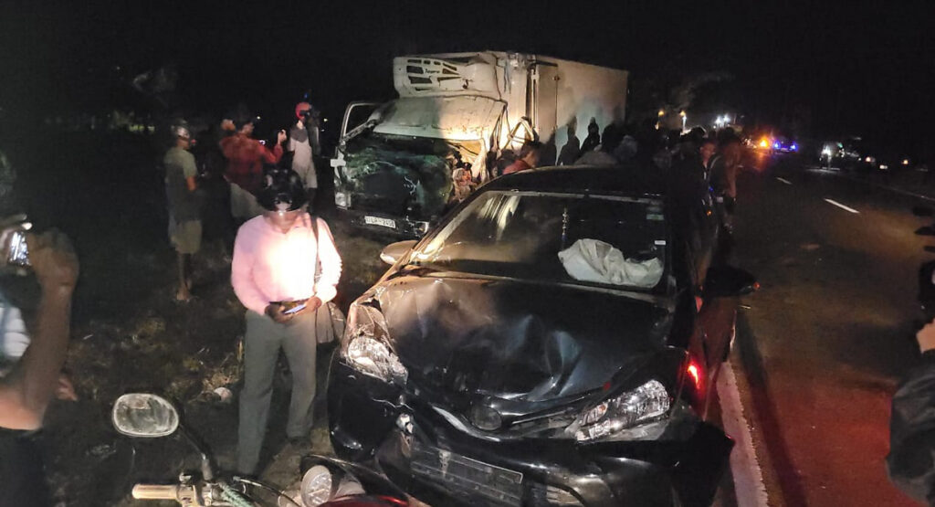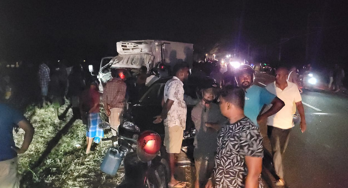 அத்தோடு, டிப்பர் வாகன சாரதி, கூலர் லொரி வாகன சாரதி ,வாகனத்தின் ஓட்டுநர், காரின் சாரதி மற்றும் அவரது மகன் ஆகியோர் காயமடைந்து யாழ். வைத்தியசாலையில் சிகிச்சைக்காக அனுமதிக்கப்பட்டுள்ளனர்.