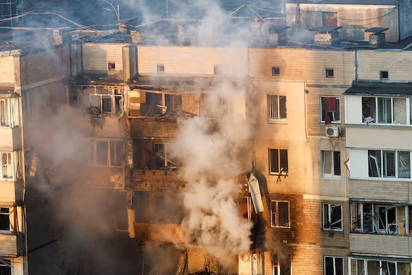 இந்தத் தாக்குதலில், உக்ரைன் தலைநகர் கீவ்வில் உள்ள அமைச்சரவை கட்டிடத்திற்கு தீ வைத்ததுடன், குடியிருப்புப் பகுதிகளையும் குறிவைத்துத் தாக்கியது.