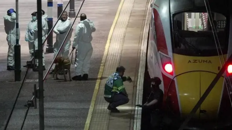 டான்கேஸ்டரில் இருந்து லண்டன் கிங்ஸ் கிராஸ் சென்றுகொண்டிருந்த ரயிலில் இந்த தாக்குதல் நடைபெற்றது. இந்த சம்பவம் தொடர்பாக பிரிட்டன் நாட்டவர்கள் இரண்டு பேரை காவல்துறை கைது செய்துள்ளது. அவர்கள் யாரென்ற அடையாளம் இதுவரை வெளியாகவில்லை.
