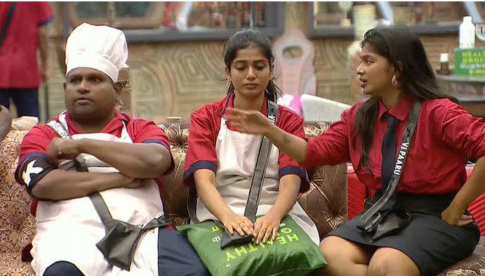 தனக்கு சீக்ரெட் டாஸ்க் தரப்பட்ட சில நிமிடங்களிலேயே அலப்பறையை ஆரம்பித்துவிட்டார் சாண்ட்ரா. “கிச்சன் டிபார்ட்மென்ட்டில் எனக்கு திவாகர் வேண்டாம். சொன்ன வேலை ஒண்ணுகூட செய்யறதில்லை. யாரும் உதவிக்கு வரதில்லை. திவாகரை வெளியே அனுப்புங்க” என்று மேனேஜர் விக்ரமிடம் கதறிக் கொண்டிருந்தார். நல்ல ஃபெர்பாமன்ஸ்.