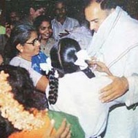கட்சித் தொண்டர்களும் பொதுமக்களும் சூழ மேடையை நெருங்கிவிட்டார் ராஜிவ்காந்தி.