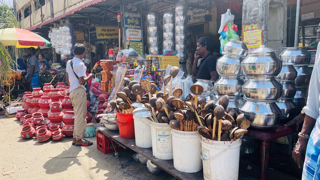 சூரியன் உதயமாகும் நேரத்தில் வீடுகளின் வாசலில் பொங்கலிட்டு வழிபாடு மேற்கொள்ளும் பாரம்பரியத்தின் காரணமாக, புதுப்பானை, கரும்பு, மஞ்சள் இலை, பழங்கள் உள்ளிட்ட பொங்கல் பொருட்களுக்கு அதிக தேவை காணப்படுகிறது. இதனால் திருநெல்வேலி சந்தை உட்பட யாழ்ப்பாணத்தின் பல பகுதிகளில் வியாபாரம் களை கட்டியுள்ளதுடன், மக்கள் வருகையும் கணிசமாக அதிகரித்துள்ளது.