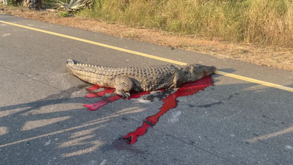 அவ்வாறு வீதியில் நடமாடிக்கொண்டிருந்த வேளையில், அந்த வழியாகப் பயணித்த கனரக வாகனம் ஒன்று முதலையின் மீது ஏறியதாலேயே அது உயிரிழந்திருக்கலாம் என அப்பகுதி மக்கள் தெரிவிக்கின்றனர்.