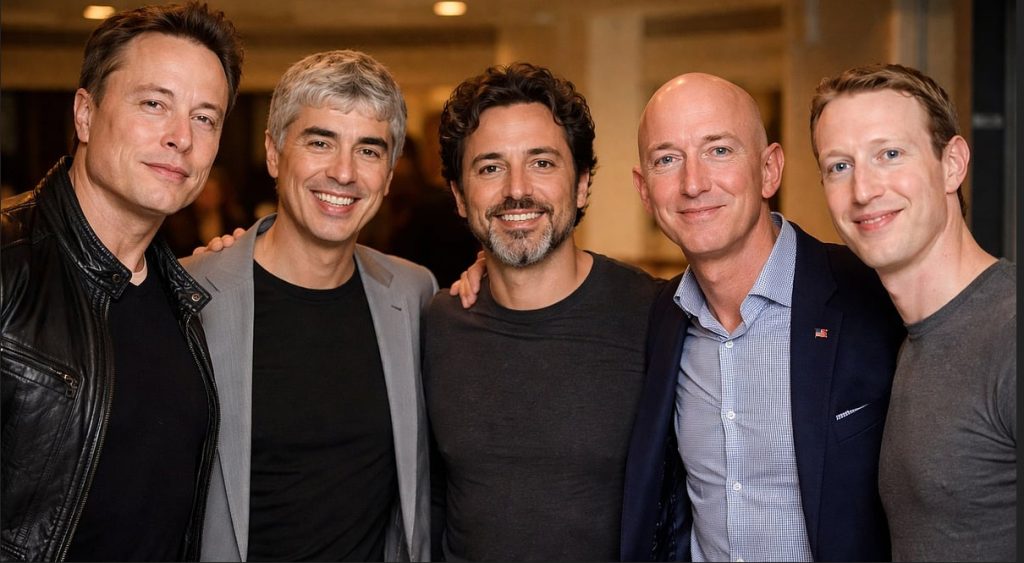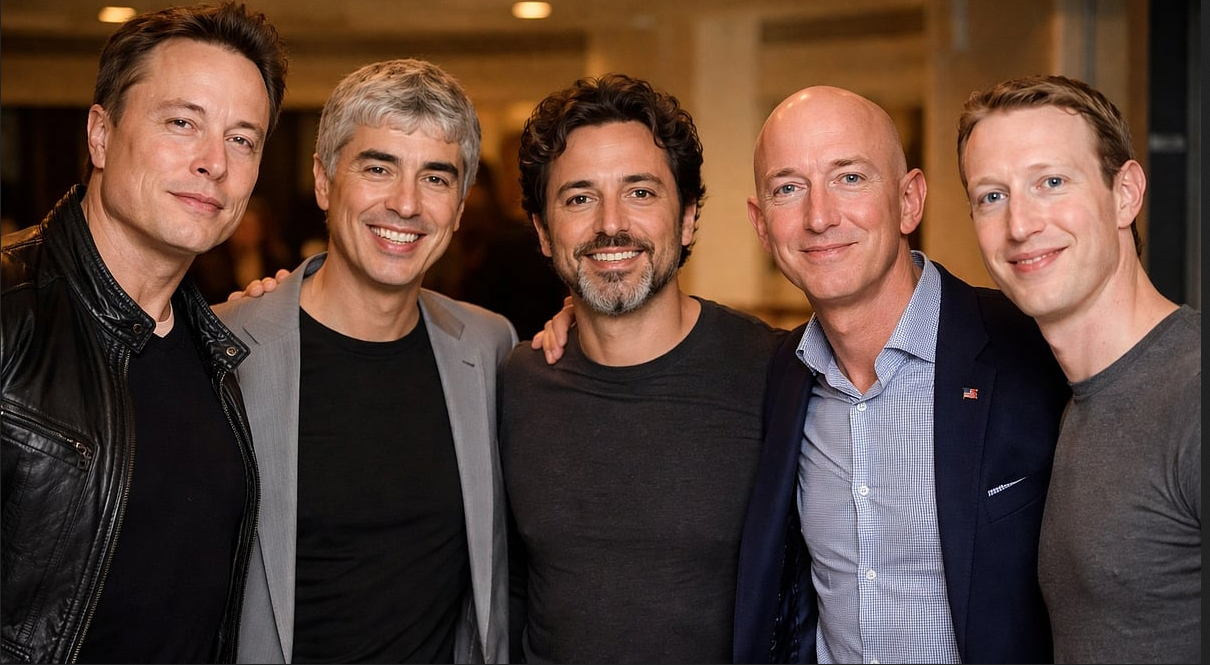 அவரைத் தொடர்ந்து கூகுள் நிறுவனர்கள் லாரி பேஜ் 257 பில்லியன் டாலர் மதிப்புடன் இரண்டாம் இடத்திலும், செர்ஜி பிரின் 237 பில்லியன் டாலர் மதிப்புடன் மூன்றாவது இடத்திலும் உள்ளனர். அமேசான் நிறுவனர் 223 பில்லியன் டாலர் மதிப்புடன் 4வது இடத்திலும் , ஃபேஸ்புக் நிறுவனர் 218 பில்லியன் டாலர் மதிப்புடன் 5வது இடத்திலும் இருக்கிறார்கள் .