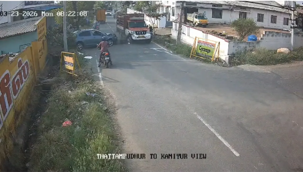 அப்போது, அதே திசையில் அவர்களுக்குப் பின்னால் மிக அதிவேகமாக வந்த கார் ஒன்று, முன்னால் சென்ற வாகனத்தைக் கவனிக்காமல் கட்டுப்பாட்டை இழந்தது. கண்ணிமைக்கும் நேரத்தில் அந்த கார், இருசக்கர வாகனத்தின் மீது பயங்கரமாக மோதியது.