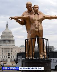 டைட்டானிக் படத்தின் நாயகன் நாயகி இருவரும் கப்பலின் முனையில் நின்றவாறு இருக்கும் மிகவும் புகழ் பெற்ற பாணியில் இருவரும் இருப்பதை போன்று உருவாக்கப்பட்டுள்ள இந்த சிலையானது தற்போதைய சூழ்நிலையில் அமெரிக்காவுக்கு உள்ளே ட்ரம்புக்கு எதிரான அலைகளை பிரதிபலித்துள்ளது.