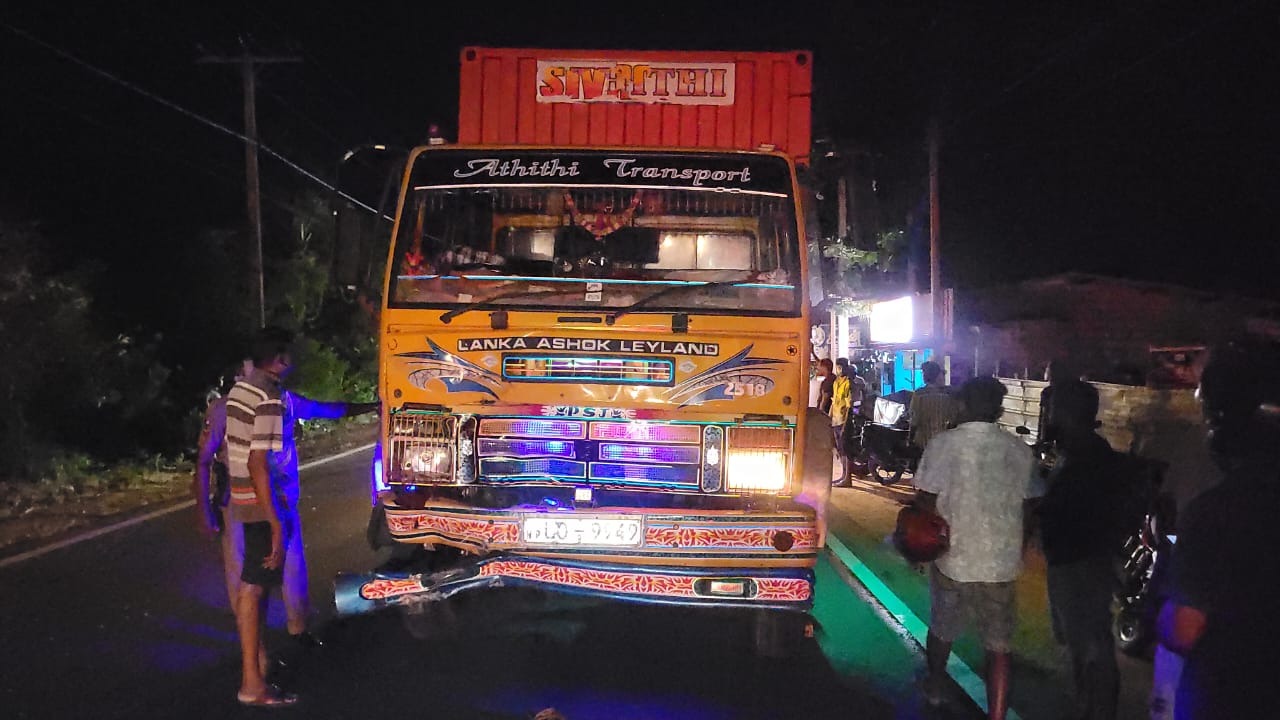 சாவகச்சேரி பிரதேசத்தில் இருந்து யாழ்ப்பாணம் நோக்கி சென்ற உந்துருளியும் யாழ்ப்பாணத்தில் இருந்து கொழும்பு நோக்கிச்சென்ற பாரவூர்தியும் நேருக்கு நேர் மோதி விபத்துக்குள்ளாகியுள்ளது.